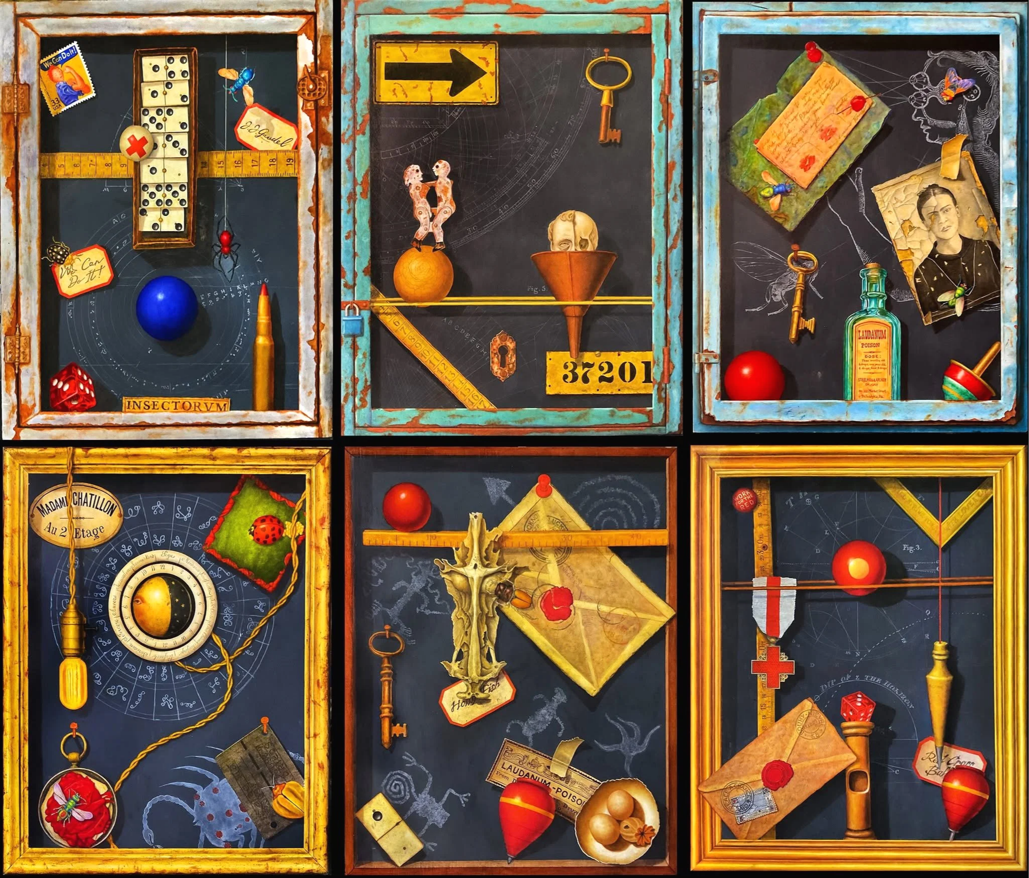 Curator LaDonna Smith presents an exhibition featuring sculptural musical instruments by French-born eclectic artist Jean-Jacques Gaudel and five of his oil paintings. In the gallery hall she presents exhibit of photo collage by Janice Hathaway, and in an exhibition studio, paintings by Kyle Eyre Clyd.