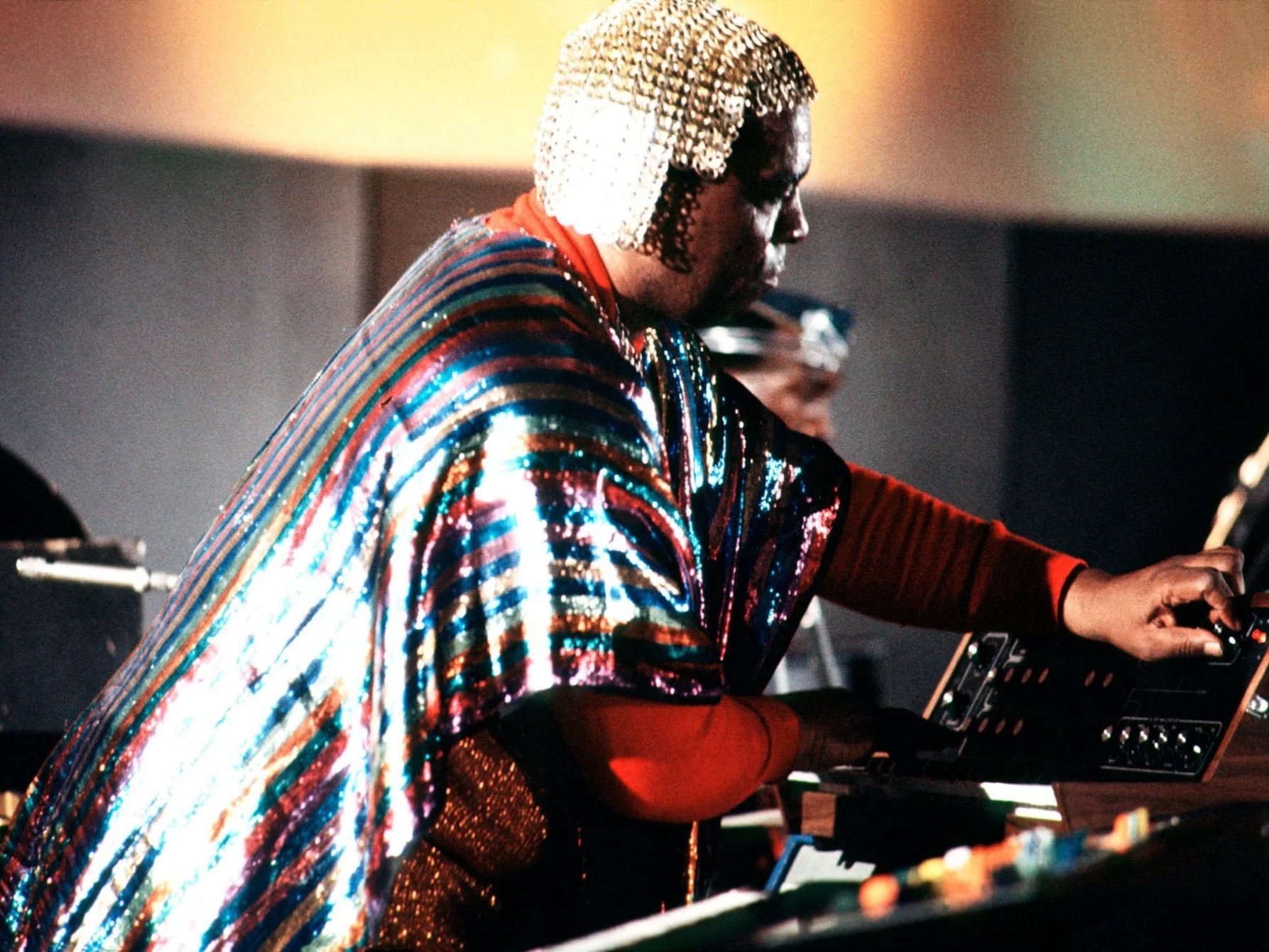 He was an early innovator in electronic sound, incorporating instruments such as the Moog synthesizer into jazz performance. His concerts were immersive experiences—featuring film, experimental lighting (including his Outerspace Visual Communicator), vivid costuming, dance, and theatrical staging. Through his ensemble, the Sun Ra Arkestra, he challenged audiences to reconsider what music could be: spiritual, cosmic, communal, and boundless.